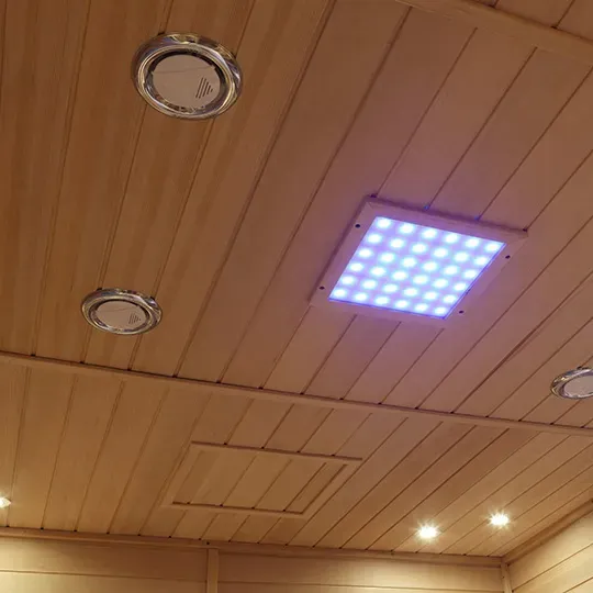 3. အပူပေးခြင်းနှင့် အလင်းရောင်ဆိုင်ရာ အတွေ့အကြုံ- ဝေးလံသော အနီအောက်ရောင်ခြည် အပူပေးပြားများကို အညီအမျှ ဖြန့်ကျက်ပြီး စိမ့်ဝင်နိုင်သော အပူကို ပေးစွမ်းသည်။ ထိပ် + ဘေးပတ်ဝန်းကျင် မီးလုံးများ (နွေးထွေးသောလေသံဖြင့်) သည် စိတ်အပန်းပြေမှုကို မြှင့်တင်ပေးပြီး ရင်ကြပ်ခြင်း သို့မဟုတ် ဖိနှိပ်မှုများကို ရှောင်ရှားပါ။