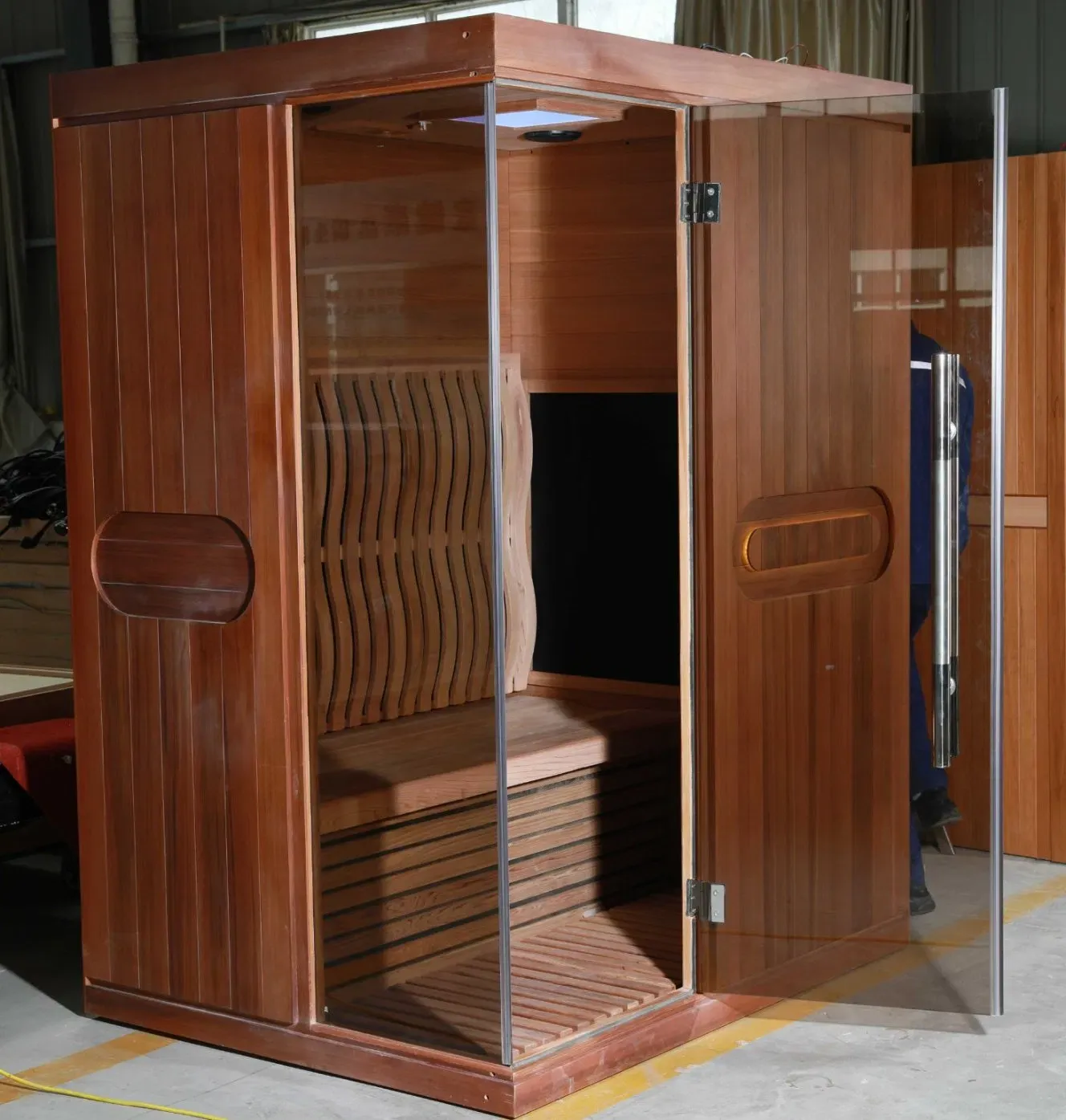 လူ ၂ ဦးပါ အနီအောက်ရောင်ခြည်သုံး ချွေးပေါင်းအိမ်သည် အိမ်တွင်းကျန်းမာရေးအတွက် အထူးသင့်လျော်သော ကုထုံးလုပ်ဆောင်ချက်များနှင့် ခေတ်မီဒီဇိုင်းကို ပေါင်းစပ်ထားသည်။ အရည်အသွေးမြင့် hemlock သို့မဟုတ် Canadian အနီရောင်အာရဇ်ဒါများ—၎င်းတို့၏တာရှည်ခံမှုနှင့် သဘာဝရနံ့အတွက် တန်ဖိုးထားသောသစ်သား—၎င်းသည် အဆင့်မြင့်အနီအောက်ရောင်ခြည်အပူပေးနည်းပညာဖြင့် ပရီမီယံ sauna အတွေ့အကြုံကို ပေးဆောင်သည်။