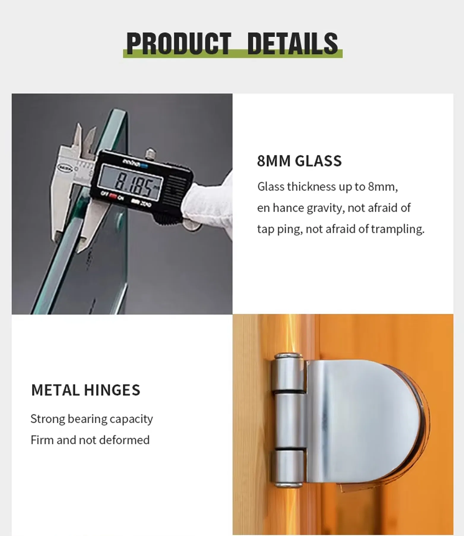 ✅Hotel-Quality Durability- 8mm tempered glass၊ လေးလံသောပတ္တာများနှင့် သံလိုက်တံခါးသော့များဖြင့် ခိုင်ခံ့ထားပြီး နေ့စဉ်အသုံးပြုနိုင်ပါသည်။